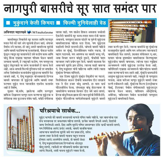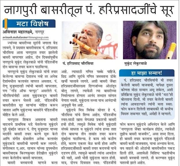 Mukund lekurwale, started making flutes along with learning and wit having developed keenness and love for it he began making flutes which were appreciated by flute players, motivated, he began to study more about technicalities of the instrument making and detailing. He is a graphics designer by profession.